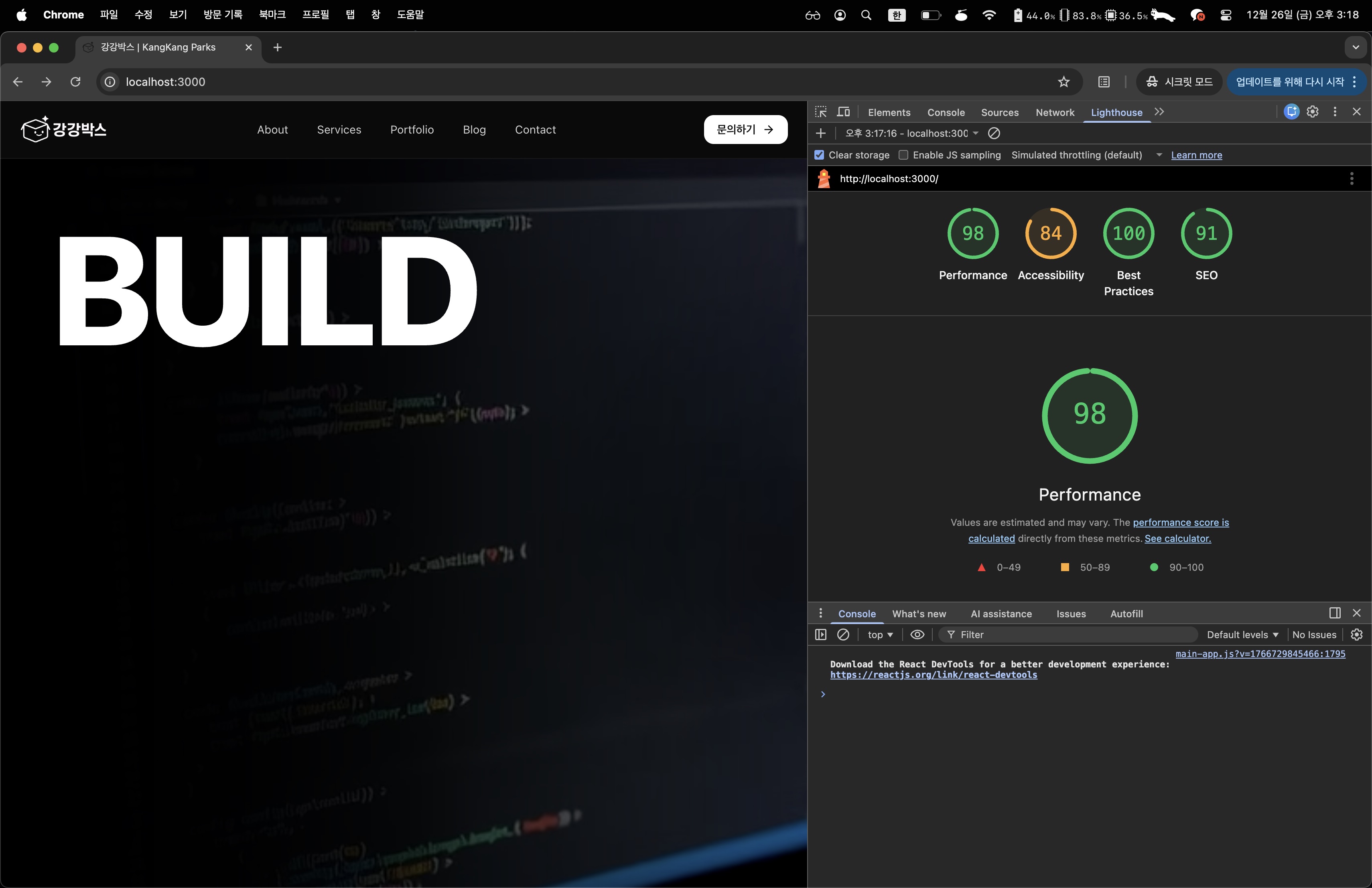 - Next.js 환경에서 Lighthouse 성능 점수 74점 → 98점 달성